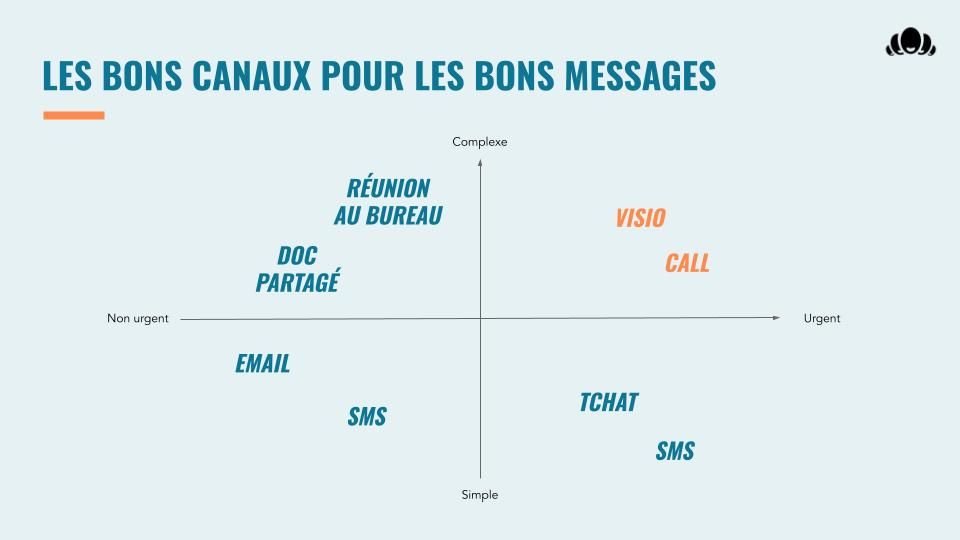 - Une mise à plat du choix du canal de communication selon le degré d’urgence et de complexité d’un message.